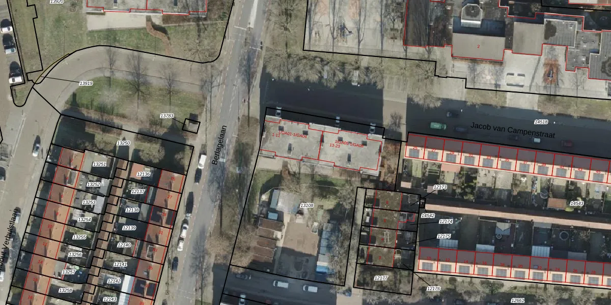 Het perceel waarop Jacob van Campenstraat 11 staat heeft een oppervlakte van 2103 m². Dit is een zeer groot perceel. De perceeloppervlakte wordt geregistreerd door het Kadaster. Gedetailleerde informatie over de maten van dit perceel kunt u vinden in het rapport Kadastrale kaart met maatvoering van Jacob van Campenstraat 11.