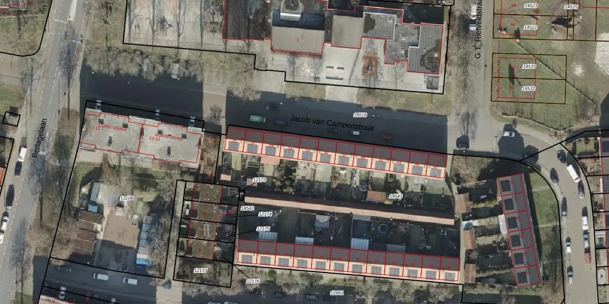 Het perceel waarop Jacob van Campenstraat 33 staat heeft een oppervlakte van 4857 m². Dit is een zeer groot perceel. De perceeloppervlakte wordt geregistreerd door het Kadaster. Gedetailleerde informatie over de maten van dit perceel kunt u vinden in het rapport Kadastrale kaart met maatvoering van Jacob van Campenstraat 33.
