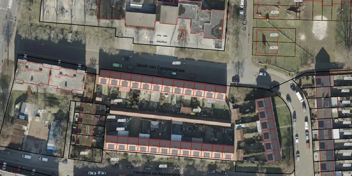 Het perceel waarop Jacob van Campenstraat 39 staat heeft een oppervlakte van 4857 m². Dit is een zeer groot perceel. De perceeloppervlakte wordt geregistreerd door het Kadaster. Gedetailleerde informatie over de maten van dit perceel kunt u vinden in het rapport Kadastrale kaart met maatvoering van Jacob van Campenstraat 39.