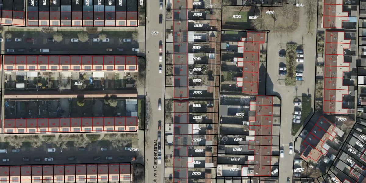 Jacob van Campenstraat 52 is gelegen op kadastraal perceel AML01H12121. Deze kadastrale aanduiding is uniek en wordt gebruikt door het Kadaster om eigendomsrechten en andere zakelijke rechten vast te leggen. Het perceel maakt onderdeel uit van de kadastrale gemeente Ambt-Almelo.
