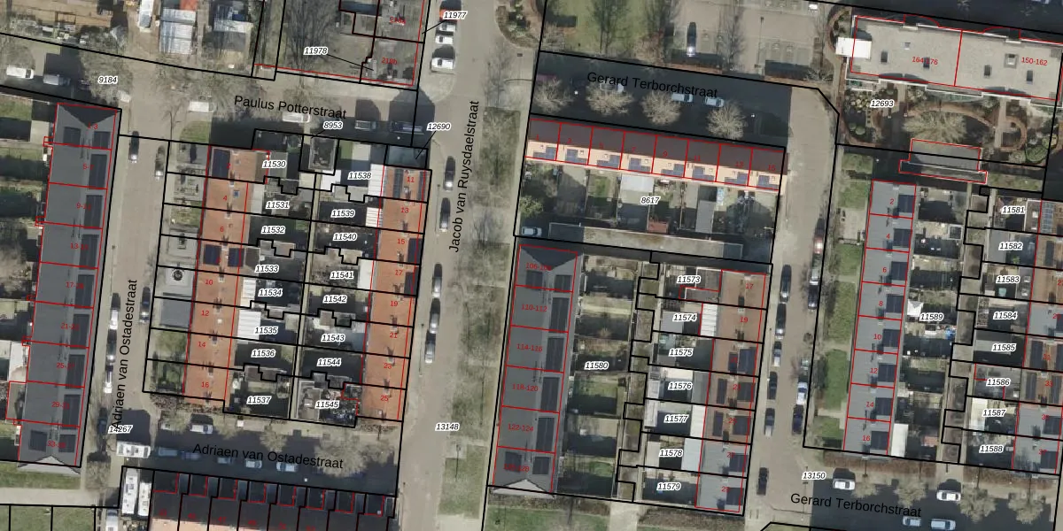 Het perceel waarop Jacob van Ruysdaelstraat 106 staat heeft een oppervlakte van 1232 m². Dit is een zeer groot perceel. De perceeloppervlakte wordt geregistreerd door het Kadaster. Gedetailleerde informatie over de maten van dit perceel kunt u vinden in het rapport Kadastrale kaart met maatvoering van Jacob van Ruysdaelstraat 106.