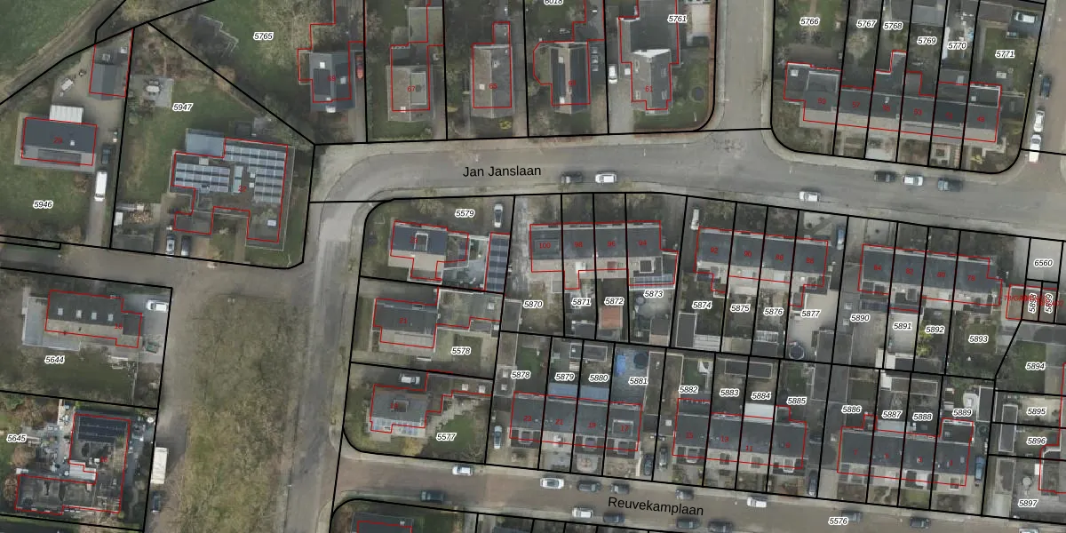 Jan Janslaan 100 is gelegen op kadastraal perceel AML01A5870. Deze kadastrale aanduiding is uniek en wordt gebruikt door het Kadaster om eigendomsrechten en andere zakelijke rechten vast te leggen. Het perceel maakt onderdeel uit van de kadastrale gemeente Ambt-Almelo.