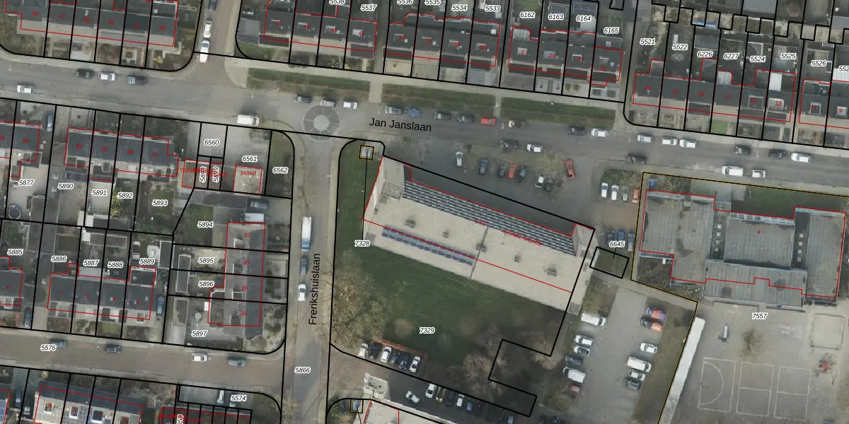 Het perceel waarop Jan Janslaan 32 staat heeft een oppervlakte van 2551 m². Dit is een zeer groot perceel. De perceeloppervlakte wordt geregistreerd door het Kadaster. Gedetailleerde informatie over de maten van dit perceel kunt u vinden in het rapport Kadastrale kaart met maatvoering van Jan Janslaan 32.