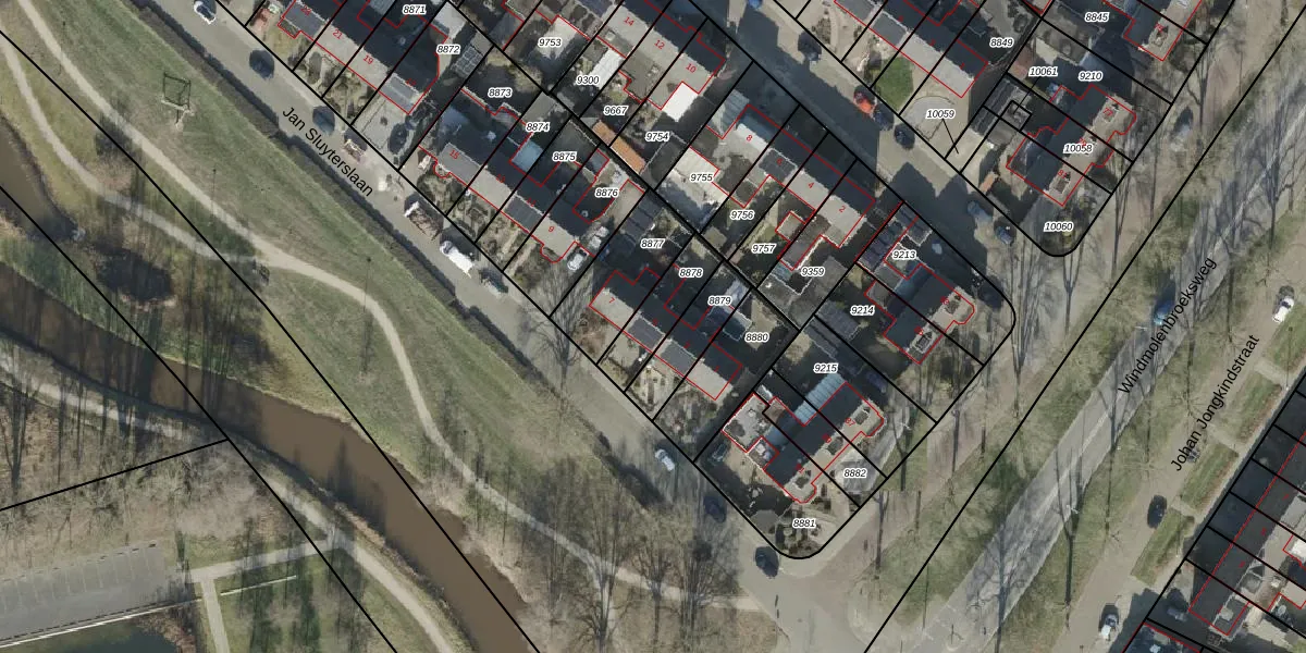 Jan Sluyterslaan 5 is gelegen op kadastraal perceel AML01H8878. Deze kadastrale aanduiding is uniek en wordt gebruikt door het Kadaster om eigendomsrechten en andere zakelijke rechten vast te leggen. Het perceel maakt onderdeel uit van de kadastrale gemeente Ambt-Almelo.