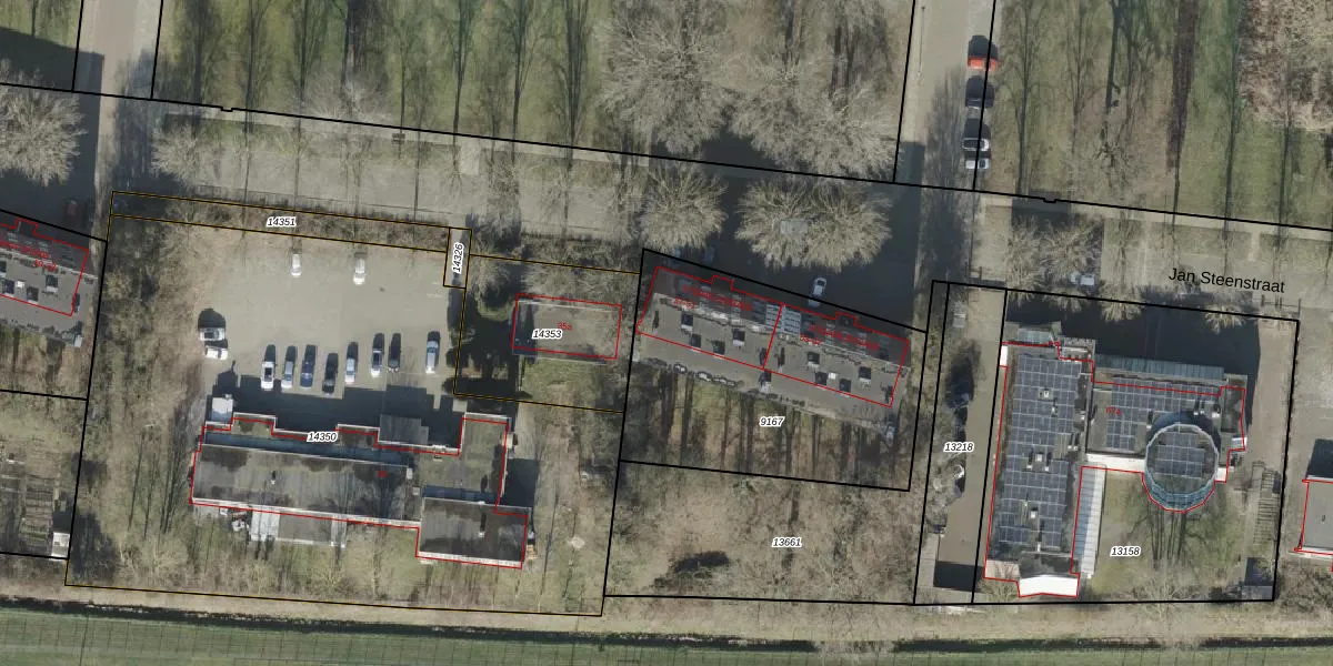 Het perceel waarop Jan Steenstraat 43 staat heeft een oppervlakte van 1235 m². Dit is een zeer groot perceel. De perceeloppervlakte wordt geregistreerd door het Kadaster. Gedetailleerde informatie over de maten van dit perceel kunt u vinden in het rapport Kadastrale kaart met maatvoering van Jan Steenstraat 43.