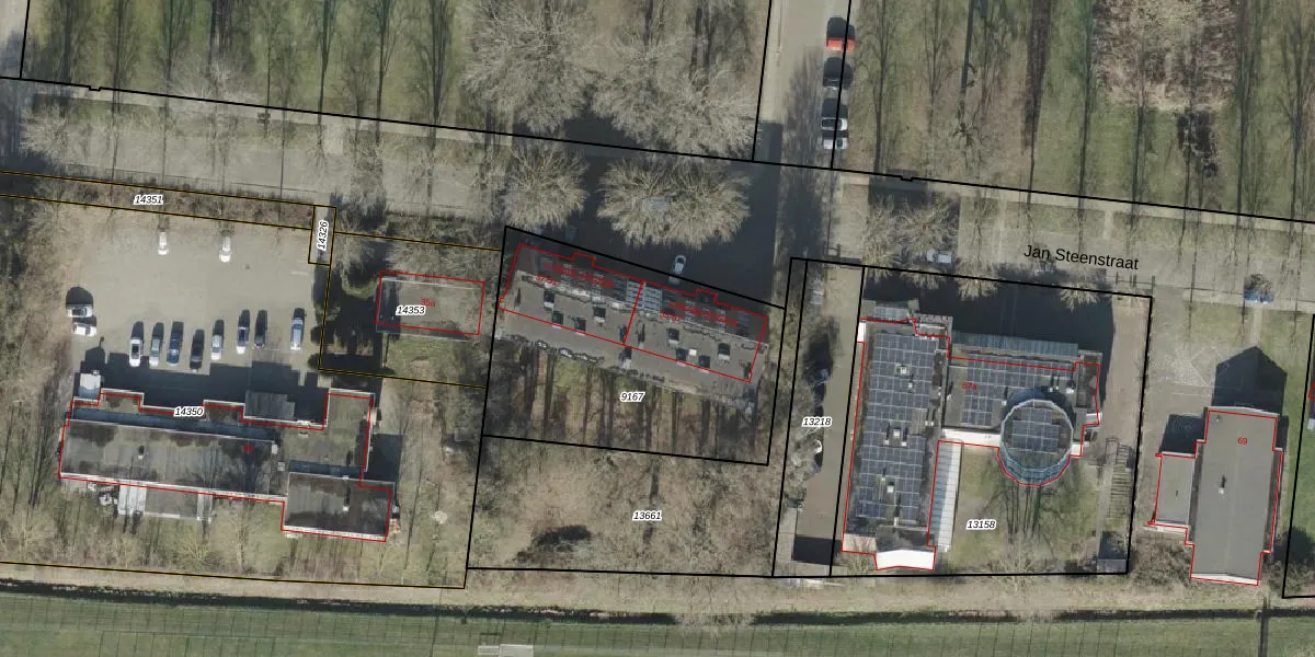 Het perceel waarop Jan Steenstraat 57 staat heeft een oppervlakte van 1235 m². Dit is een zeer groot perceel. De perceeloppervlakte wordt geregistreerd door het Kadaster. Gedetailleerde informatie over de maten van dit perceel kunt u vinden in het rapport Kadastrale kaart met maatvoering van Jan Steenstraat 57.