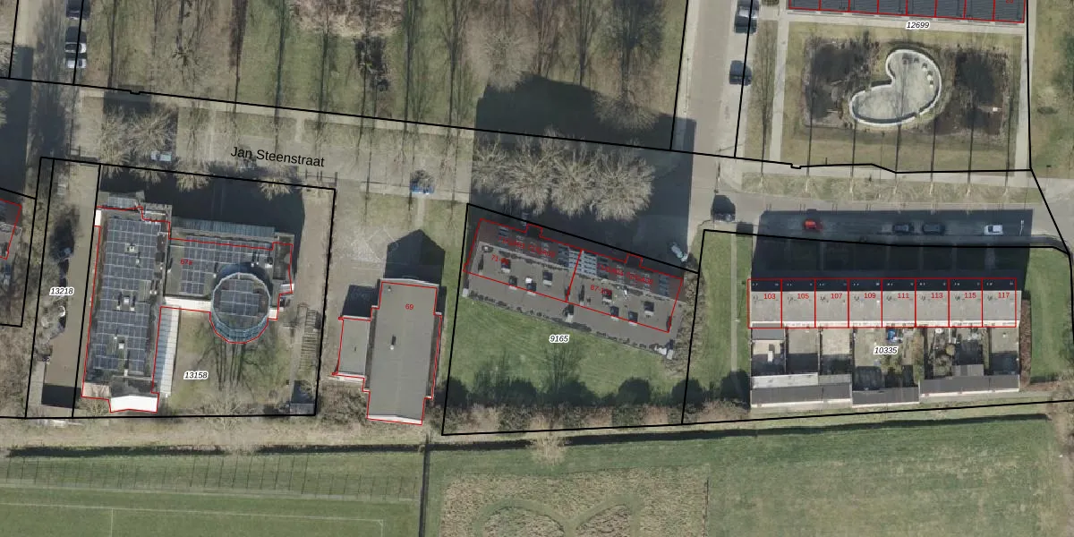 Het perceel waarop Jan Steenstraat 83 staat heeft een oppervlakte van 1580 m². Dit is een zeer groot perceel. De perceeloppervlakte wordt geregistreerd door het Kadaster. Gedetailleerde informatie over de maten van dit perceel kunt u vinden in het rapport Kadastrale kaart met maatvoering van Jan Steenstraat 83.