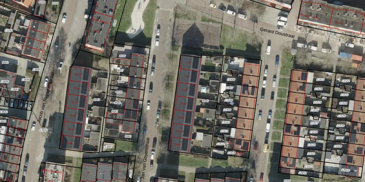Het perceel waarop Jan van Goyenstraat 10 staat heeft een oppervlakte van 1255 m². Dit is een zeer groot perceel. De perceeloppervlakte wordt geregistreerd door het Kadaster. Gedetailleerde informatie over de maten van dit perceel kunt u vinden in het rapport Kadastrale kaart met maatvoering van Jan van Goyenstraat 10.