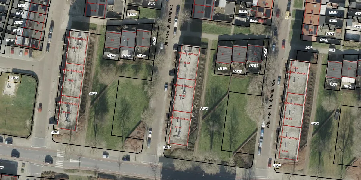 Jan van Goyenstraat 46 is gelegen op kadastraal perceel AML01H14004. Deze kadastrale aanduiding is uniek en wordt gebruikt door het Kadaster om eigendomsrechten en andere zakelijke rechten vast te leggen. Het perceel maakt onderdeel uit van de kadastrale gemeente Ambt-Almelo.