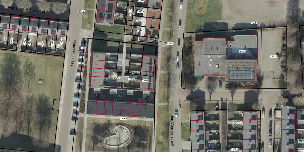 Het perceel waarop Jan Vermeerstraat 21 staat heeft een oppervlakte van 166 m². Dit is een middelgroot perceel. De perceeloppervlakte wordt geregistreerd door het Kadaster. Gedetailleerde informatie over de maten van dit perceel kunt u vinden in het rapport Kadastrale kaart met maatvoering van Jan Vermeerstraat 21.