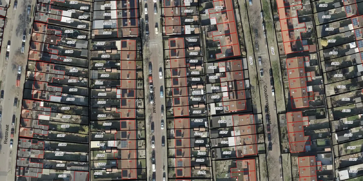 Het perceel waarop Jasmijnstraat 36 staat heeft een oppervlakte van 119 m². Dit is een middelgroot perceel. De perceeloppervlakte wordt geregistreerd door het Kadaster. Gedetailleerde informatie over de maten van dit perceel kunt u vinden in het rapport Kadastrale kaart met maatvoering van Jasmijnstraat 36.