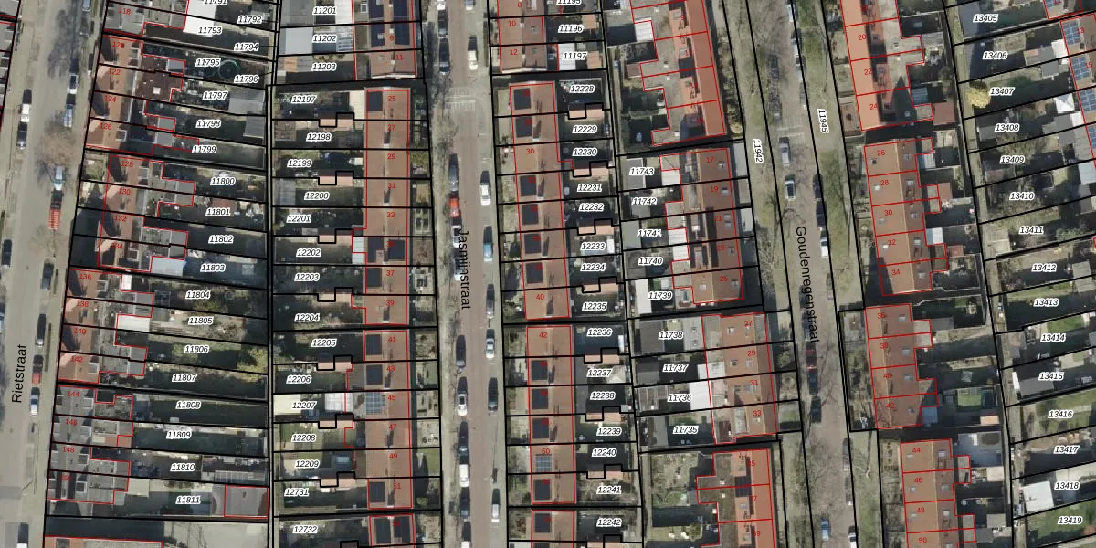Gebruik de zoekbalk of klik op een perceel voor informatie over de adressen binnen dit perceel.