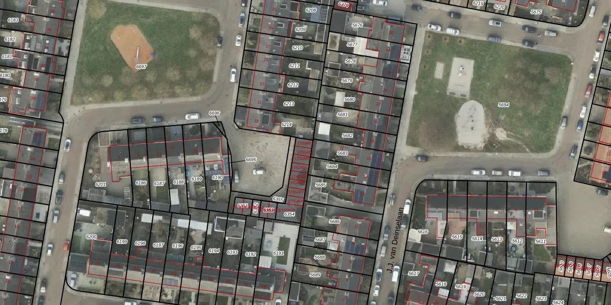 Het perceel waarop het adres ligt is AML01-A-6354. De afkorting 'AML01' staat voor kadastrale gemeente Ambt-Almelo. Het perceel is 166 m² groot. Dat is kleiner dan de gemiddelde perceeloppervlakte in Ambt-Almelo, dat op 2067,1 m² ligt. De grootste perceeloppervlakte in de kadastrale gemeente is 67,4 ha. De kleinste oppervlakte bedraagt 0 m². Er zijn 9 adressen aanwezig op het perceel. In de Basisregistratie Kadaster (BRK) werden de grenzen van het perceel geregistreerd op 01-12-2009.