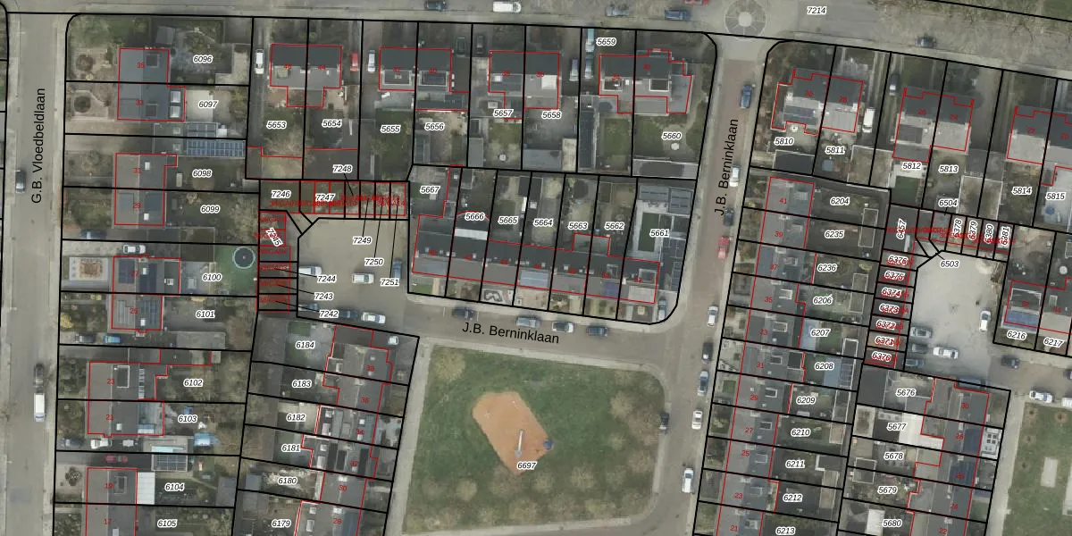Gebruik de zoekbalk of klik op een perceel voor informatie over de adressen binnen dit perceel.