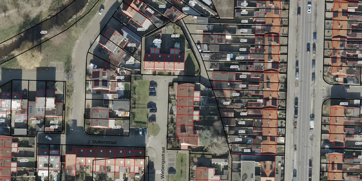 Het perceel waarop J.G. Wiebengastraat 43 staat heeft een oppervlakte van 3635 m². Dit is een zeer groot perceel. De perceeloppervlakte wordt geregistreerd door het Kadaster. Gedetailleerde informatie over de maten van dit perceel kunt u vinden in het rapport Kadastrale kaart met maatvoering van J.G. Wiebengastraat 43.
