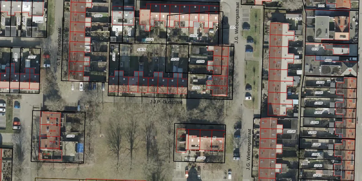 Het perceel waarop J.J.P. Oudstraat 16 staat heeft een oppervlakte van 940 m². Dit is een groot perceel. De perceeloppervlakte wordt geregistreerd door het Kadaster. Gedetailleerde informatie over de maten van dit perceel kunt u vinden in het rapport Kadastrale kaart met maatvoering van J.J.P. Oudstraat 16.