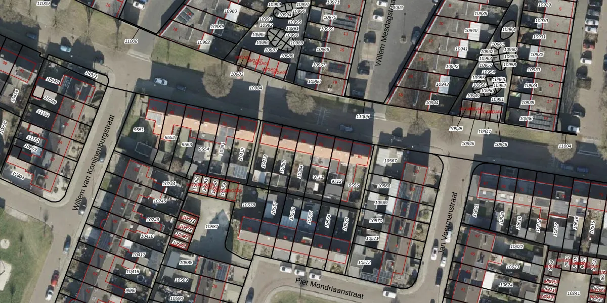 Gebruik de zoekbalk of klik op een perceel voor informatie over de adressen binnen dit perceel.