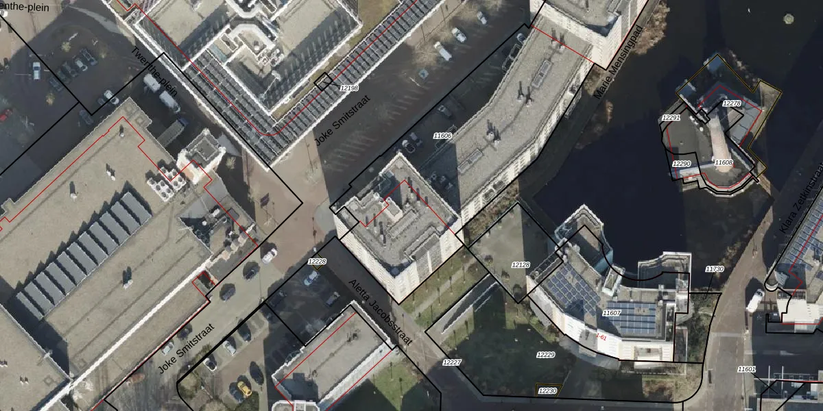 Joke Smitstraat 107 is gelegen op kadastraal perceel AML02B11606. Deze kadastrale aanduiding is uniek en wordt gebruikt door het Kadaster om eigendomsrechten en andere zakelijke rechten vast te leggen. Het perceel maakt onderdeel uit van de kadastrale gemeente Stad-Almelo.