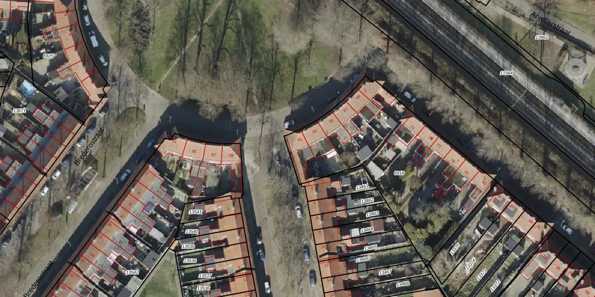 Het perceel waarop Joost van den Vondelstraat 61 staat heeft een oppervlakte van 1960 m². Dit is een zeer groot perceel. De perceeloppervlakte wordt geregistreerd door het Kadaster. Gedetailleerde informatie over de maten van dit perceel kunt u vinden in het rapport Kadastrale kaart met maatvoering van Joost van den Vondelstraat 61.