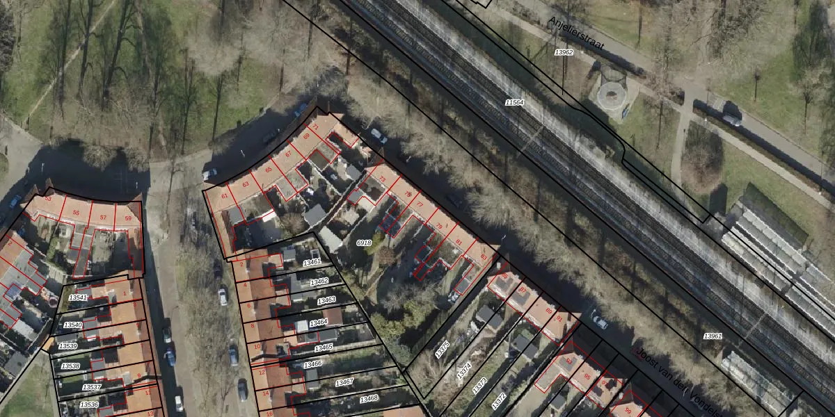 Het perceel waarop Joost van den Vondelstraat 77 staat heeft een oppervlakte van 1960 m². Dit is een zeer groot perceel. De perceeloppervlakte wordt geregistreerd door het Kadaster. Gedetailleerde informatie over de maten van dit perceel kunt u vinden in het rapport Kadastrale kaart met maatvoering van Joost van den Vondelstraat 77.