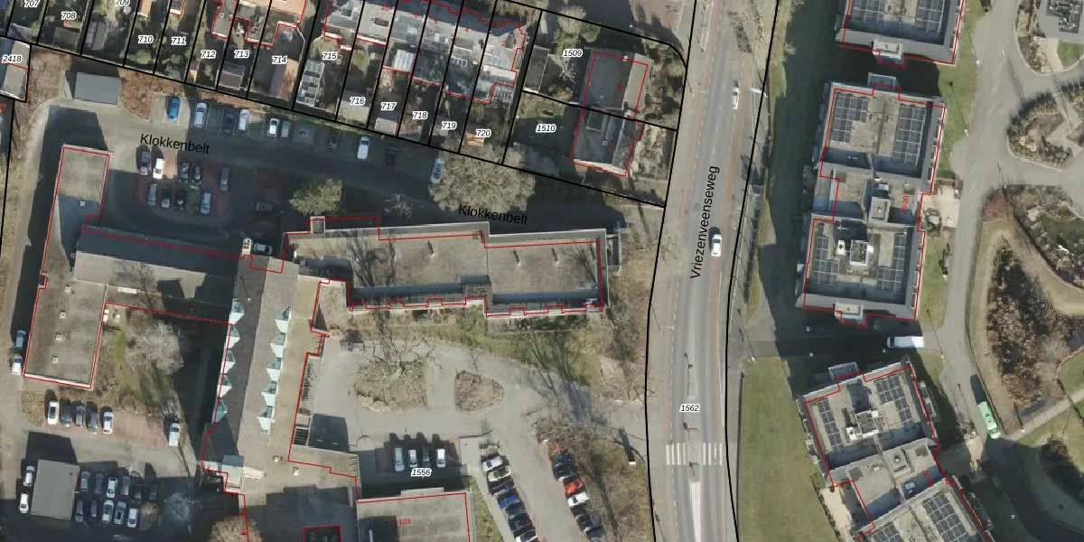 Het perceel waarop Klokkenbelt 57 staat heeft een oppervlakte van 2,4 ha. Dit is een zeer groot perceel. De perceeloppervlakte wordt geregistreerd door het Kadaster. Gedetailleerde informatie over de maten van dit perceel kunt u vinden in het rapport Kadastrale kaart met maatvoering van Klokkenbelt 57.