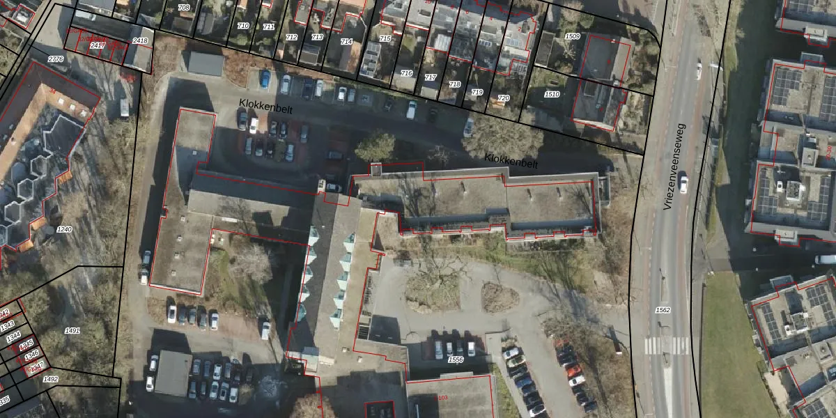 Het perceel waarop Klokkenbelt 59 staat heeft een oppervlakte van 2,4 ha. Dit is een zeer groot perceel. De perceeloppervlakte wordt geregistreerd door het Kadaster. Gedetailleerde informatie over de maten van dit perceel kunt u vinden in het rapport Kadastrale kaart met maatvoering van Klokkenbelt 59.
