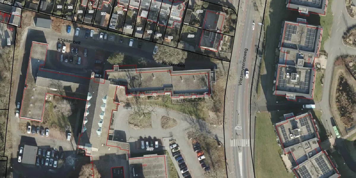 Het perceel waarop Klokkenbelt 62 staat heeft een oppervlakte van 2,4 ha. Dit is een zeer groot perceel. De perceeloppervlakte wordt geregistreerd door het Kadaster. Gedetailleerde informatie over de maten van dit perceel kunt u vinden in het rapport Kadastrale kaart met maatvoering van Klokkenbelt 62.
