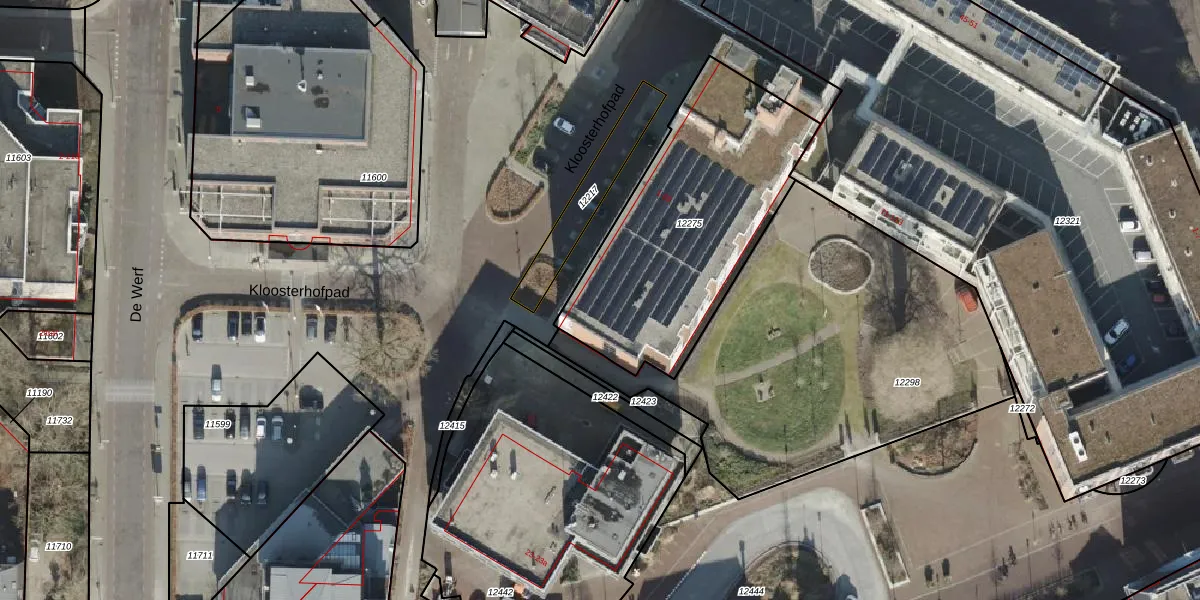 Kloosterhofpad 9 is gelegen op kadastraal perceel AML02B12275. Deze kadastrale aanduiding is uniek en wordt gebruikt door het Kadaster om eigendomsrechten en andere zakelijke rechten vast te leggen. Het perceel maakt onderdeel uit van de kadastrale gemeente Stad-Almelo.