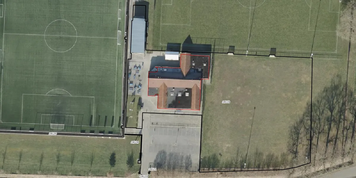 Het adres is gelegen op perceel 14119 in de sectie H en de kadastrale gemeente Ambt-Almelo. De kadastrale aanduiding is aldus AML01-H-14119. De oppervlakte van het perceel is 5726 m². Dat is groter dan gemiddeld in Ambt-Almelo, waar de gemiddelde perceeloppervlakte op 2069,53 m² ligt. De grootste perceeloppervlakte in de kadastrale gemeente is 67,4 ha. De kleinste oppervlakte bedraagt 0 m². Er zijn geen andere adressen aanwezig op het perceel. De huidige grenzen van het perceel zijn digitaal in de Basisregistratie Kadaster (BRK) geregistreerd op 05-09-2018.