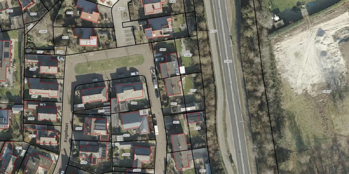 Kogellaan 9 is gelegen op kadastraal perceel AML01B5910. Deze kadastrale aanduiding is uniek en wordt gebruikt door het Kadaster om eigendomsrechten en andere zakelijke rechten vast te leggen. Het perceel maakt onderdeel uit van de kadastrale gemeente Ambt-Almelo.