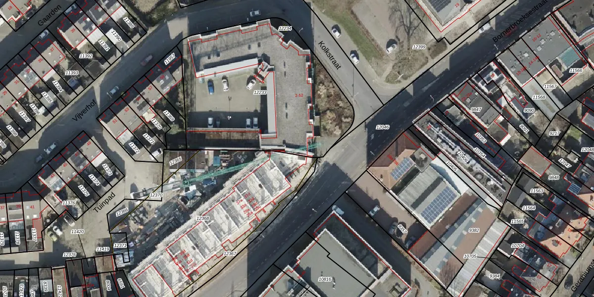 Kolkstraat 2 is gelegen op kadastraal perceel AML02B12233. Deze kadastrale aanduiding is uniek en wordt gebruikt door het Kadaster om eigendomsrechten en andere zakelijke rechten vast te leggen. Het perceel maakt onderdeel uit van de kadastrale gemeente Stad-Almelo.