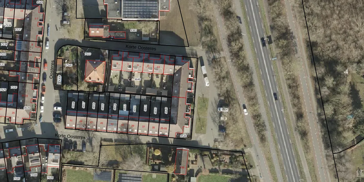 Het perceel waarop Korte Oosteres 23 staat heeft een oppervlakte van 566 m². Dit is een groot perceel. De perceeloppervlakte wordt geregistreerd door het Kadaster. Gedetailleerde informatie over de maten van dit perceel kunt u vinden in het rapport Kadastrale kaart met maatvoering van Korte Oosteres 23.