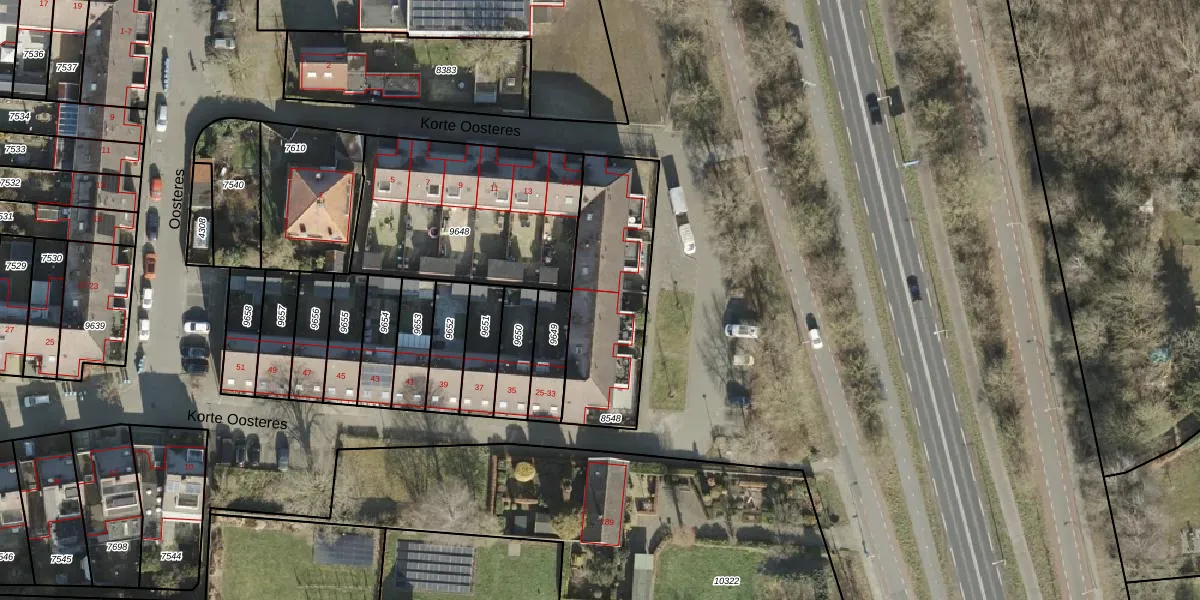 Het perceel waarop Korte Oosteres 25 staat heeft een oppervlakte van 566 m². Dit is een groot perceel. De perceeloppervlakte wordt geregistreerd door het Kadaster. Gedetailleerde informatie over de maten van dit perceel kunt u vinden in het rapport Kadastrale kaart met maatvoering van Korte Oosteres 25.