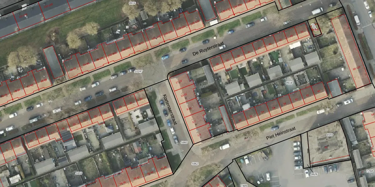 Kortenaerstraat 13 is gelegen op kadastraal perceel AML01B8918. Deze kadastrale aanduiding is uniek en wordt gebruikt door het Kadaster om eigendomsrechten en andere zakelijke rechten vast te leggen. Het perceel maakt onderdeel uit van de kadastrale gemeente Ambt-Almelo.