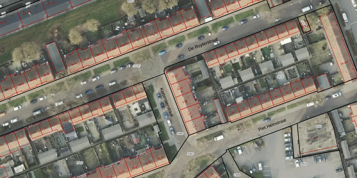 Kortenaerstraat 15 is gelegen op kadastraal perceel AML01B8918. Deze kadastrale aanduiding is uniek en wordt gebruikt door het Kadaster om eigendomsrechten en andere zakelijke rechten vast te leggen. Het perceel maakt onderdeel uit van de kadastrale gemeente Ambt-Almelo.