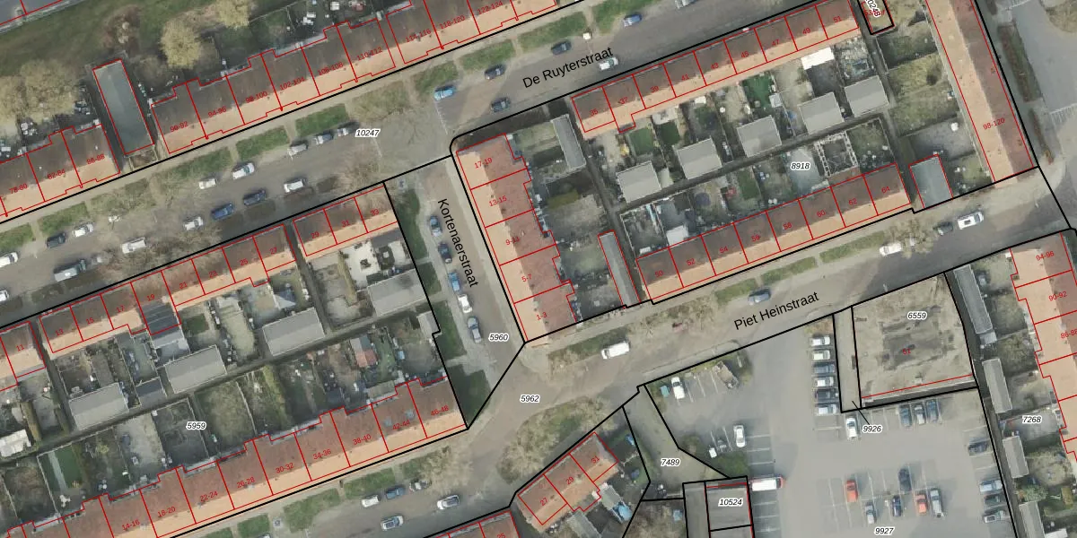 Kortenaerstraat 5 is gelegen op kadastraal perceel AML01B8918. Deze kadastrale aanduiding is uniek en wordt gebruikt door het Kadaster om eigendomsrechten en andere zakelijke rechten vast te leggen. Het perceel maakt onderdeel uit van de kadastrale gemeente Ambt-Almelo.
