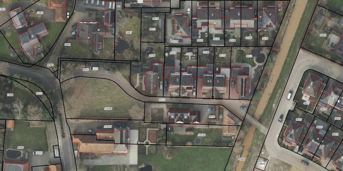 Krommendijk 49 is gelegen op kadastraal perceel AML01B9107. Deze kadastrale aanduiding is uniek en wordt gebruikt door het Kadaster om eigendomsrechten en andere zakelijke rechten vast te leggen. Het perceel maakt onderdeel uit van de kadastrale gemeente Ambt-Almelo.