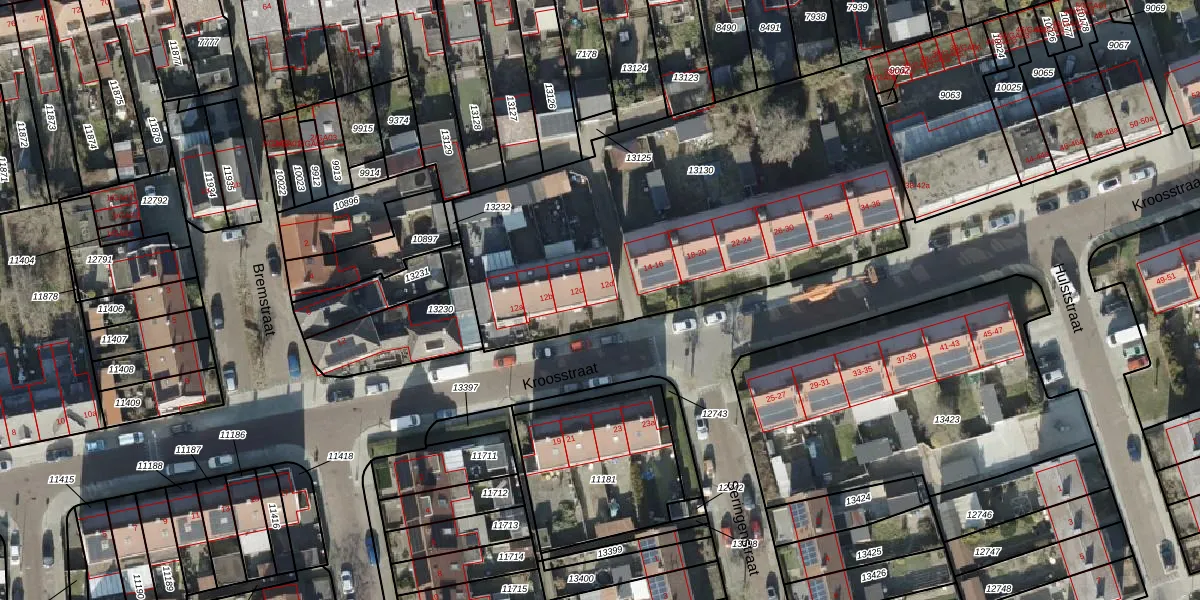 Het perceel waarop Kroosstraat 12-d staat heeft een oppervlakte van 2223 m². Dit is een zeer groot perceel. De perceeloppervlakte wordt geregistreerd door het Kadaster. Gedetailleerde informatie over de maten van dit perceel kunt u vinden in het rapport Kadastrale kaart met maatvoering van Kroosstraat 12-d.