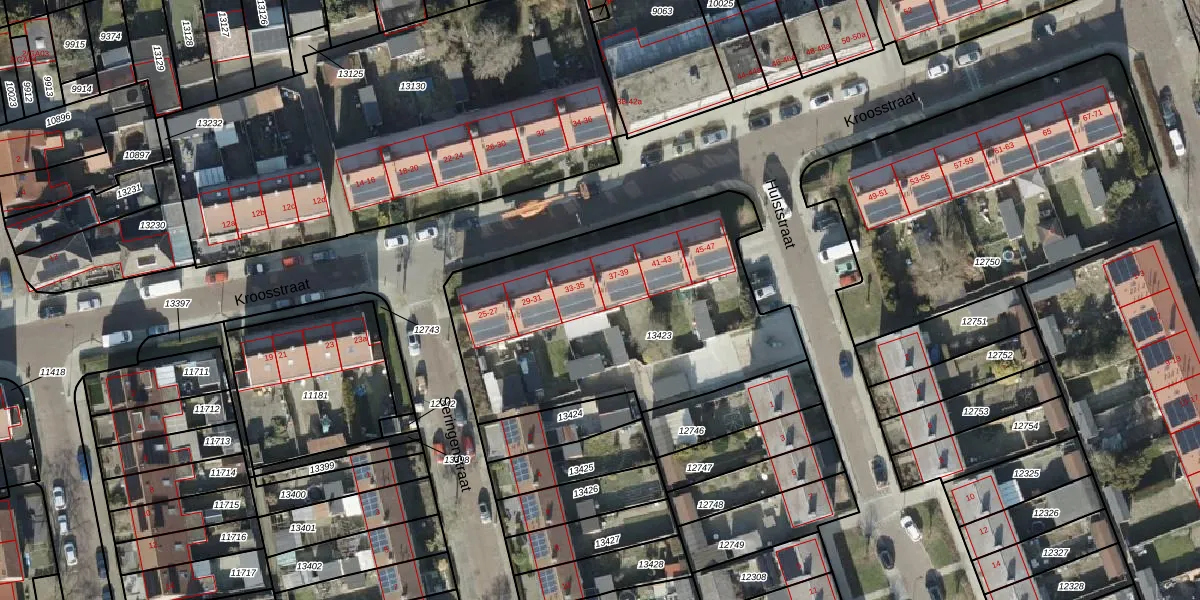 Het perceel waarop Kroosstraat 35 staat heeft een oppervlakte van 1503 m². Dit is een zeer groot perceel. De perceeloppervlakte wordt geregistreerd door het Kadaster. Gedetailleerde informatie over de maten van dit perceel kunt u vinden in het rapport Kadastrale kaart met maatvoering van Kroosstraat 35.