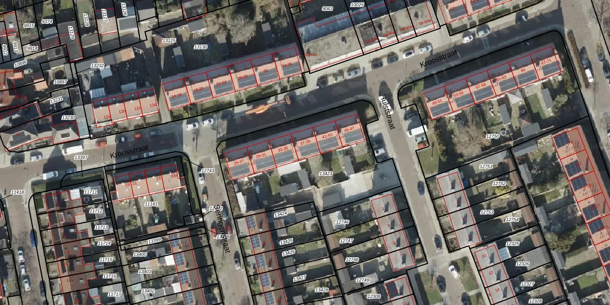 Kroosstraat 37 is gelegen op kadastraal perceel AML01H13423. Deze kadastrale aanduiding is uniek en wordt gebruikt door het Kadaster om eigendomsrechten en andere zakelijke rechten vast te leggen. Het perceel maakt onderdeel uit van de kadastrale gemeente Ambt-Almelo.