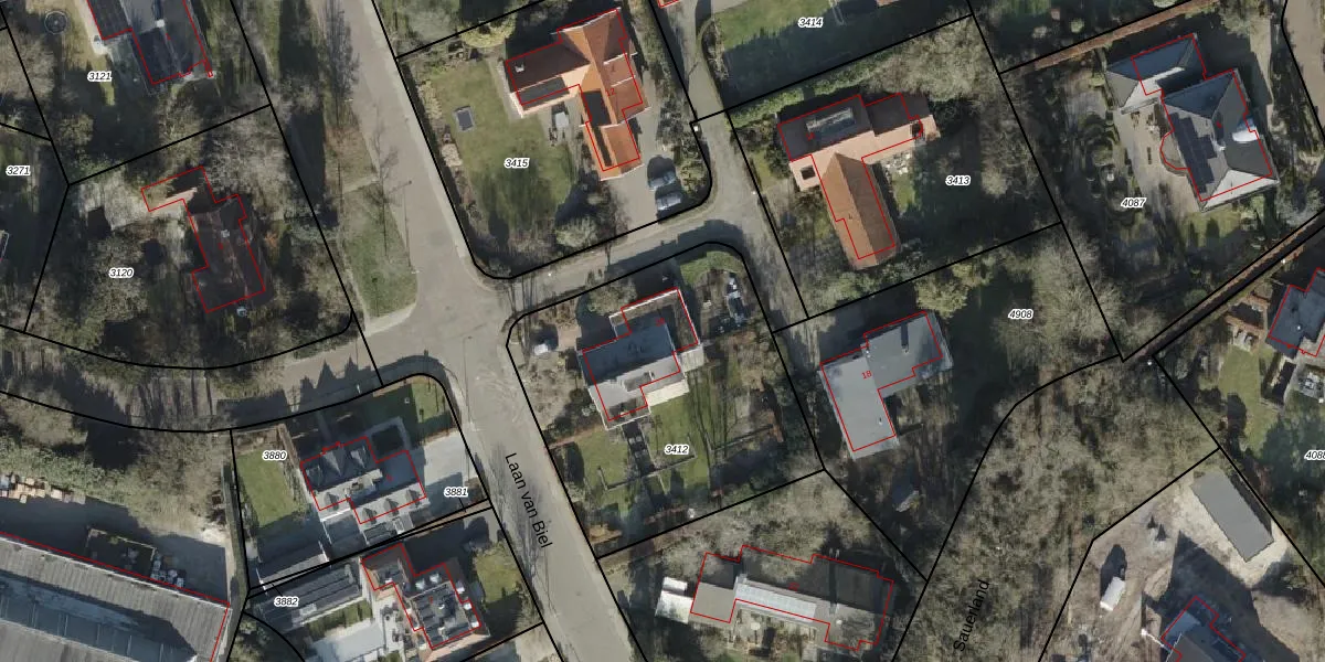 Het perceel waarop Laan van Biel 20 staat heeft een oppervlakte van 1430 m². Dit is een zeer groot perceel. De perceeloppervlakte wordt geregistreerd door het Kadaster. Gedetailleerde informatie over de maten van dit perceel kunt u vinden in het rapport Kadastrale kaart met maatvoering van Laan van Biel 20.