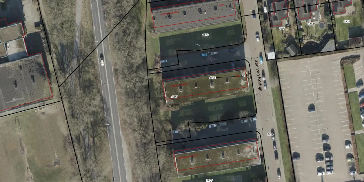 Het perceel waarop Laan van Kortrijk 17 staat heeft een oppervlakte van 1890 m². Dit is een zeer groot perceel. De perceeloppervlakte wordt geregistreerd door het Kadaster. Gedetailleerde informatie over de maten van dit perceel kunt u vinden in het rapport Kadastrale kaart met maatvoering van Laan van Kortrijk 17.