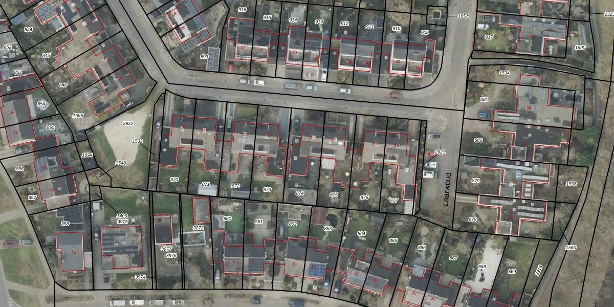 Het perceel waarop Laarwoud 25 staat heeft een oppervlakte van 345 m². Dit is een groot perceel. De perceeloppervlakte wordt geregistreerd door het Kadaster. Gedetailleerde informatie over de maten van dit perceel kunt u vinden in het rapport Kadastrale kaart met maatvoering van Laarwoud 25.
