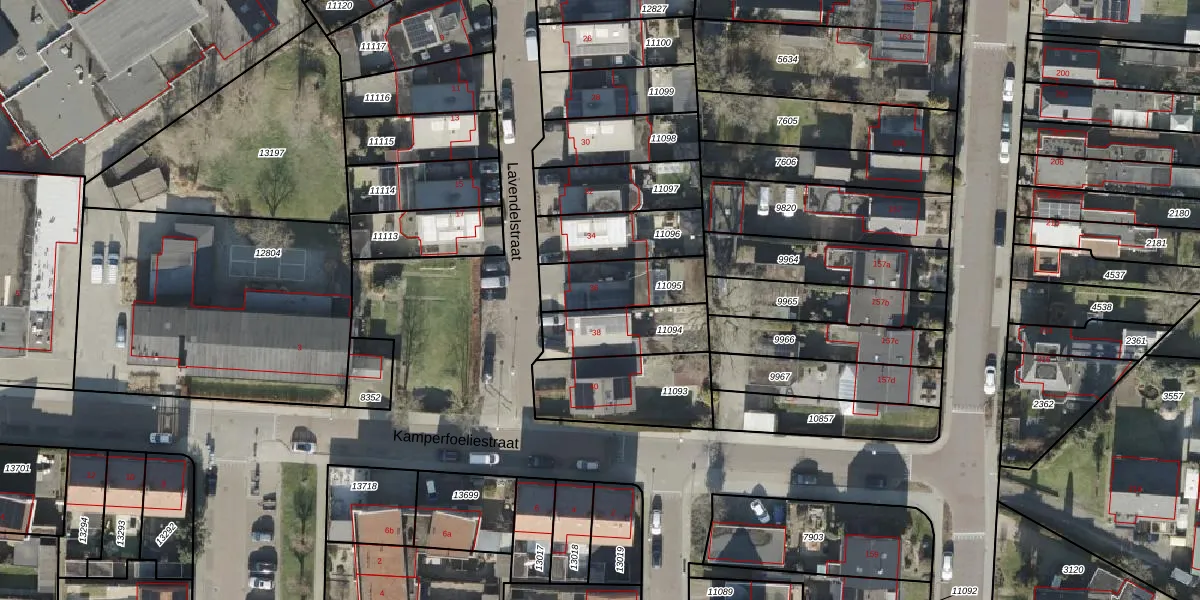 Het perceel waarop Lavendelstraat 36 staat heeft een oppervlakte van 224 m². Dit is een middelgroot perceel. De perceeloppervlakte wordt geregistreerd door het Kadaster. Gedetailleerde informatie over de maten van dit perceel kunt u vinden in het rapport Kadastrale kaart met maatvoering van Lavendelstraat 36.