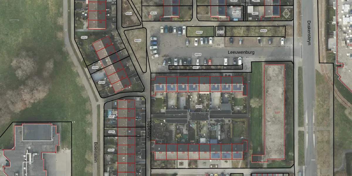 Het perceel waarop Leeuwenburg 14 staat heeft een oppervlakte van 4560 m². Dit is een zeer groot perceel. De perceeloppervlakte wordt geregistreerd door het Kadaster. Gedetailleerde informatie over de maten van dit perceel kunt u vinden in het rapport Kadastrale kaart met maatvoering van Leeuwenburg 14.
