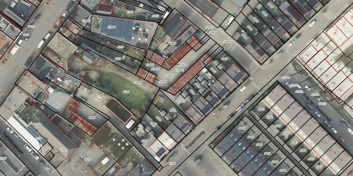 Het perceel waarop het adres ligt is AML01-B-10942. De afkorting 'AML01' staat voor kadastrale gemeente Ambt-Almelo. Het perceel is 171 m² groot. Dat is kleiner dan de gemiddelde perceeloppervlakte in Ambt-Almelo, dat op 2069,4 m² ligt. Het grootste perceel in de kadastrale gemeente is 67,4 ha. Het kleinste perceel heeft een oppervlakte van 0 m². Er zijn 11 adressen aanwezig op het perceel. De laatste wijziging in het de Basisregistratie Kadaster (BRK) was op 26-02-2026.