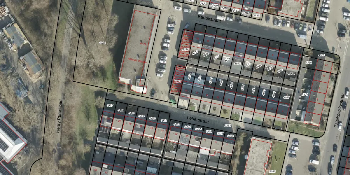 Lehárstraat 19-GA02 is gelegen op kadastraal perceel AML01I2285. Deze kadastrale aanduiding is uniek en wordt gebruikt door het Kadaster om eigendomsrechten en andere zakelijke rechten vast te leggen. Het perceel maakt onderdeel uit van de kadastrale gemeente Ambt-Almelo.