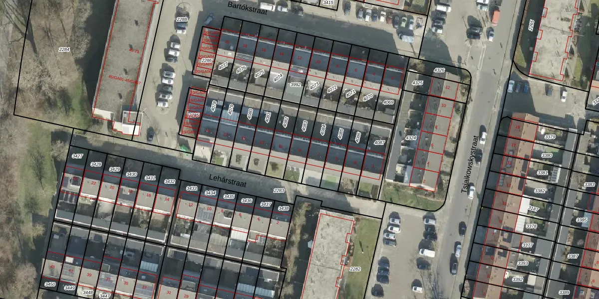 Lehárstraat 9 is gelegen op kadastraal perceel AML01I4083. Deze kadastrale aanduiding is uniek en wordt gebruikt door het Kadaster om eigendomsrechten en andere zakelijke rechten vast te leggen. Het perceel maakt onderdeel uit van de kadastrale gemeente Ambt-Almelo.