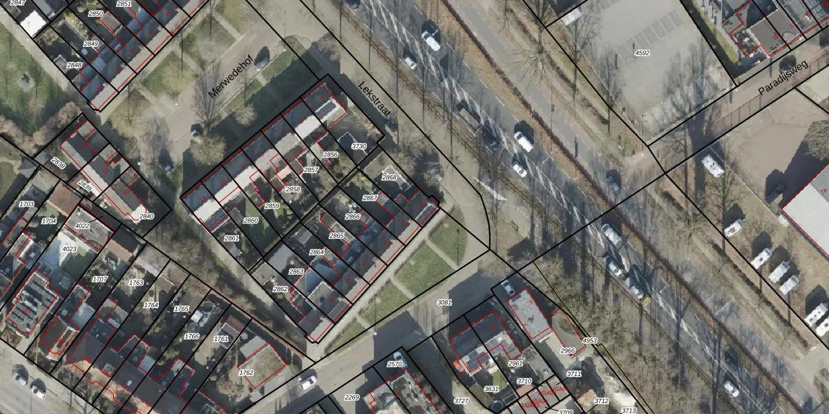Lekstraat 14 is gelegen op kadastraal perceel AML01F2868. Deze kadastrale aanduiding is uniek en wordt gebruikt door het Kadaster om eigendomsrechten en andere zakelijke rechten vast te leggen. Het perceel maakt onderdeel uit van de kadastrale gemeente Ambt-Almelo.