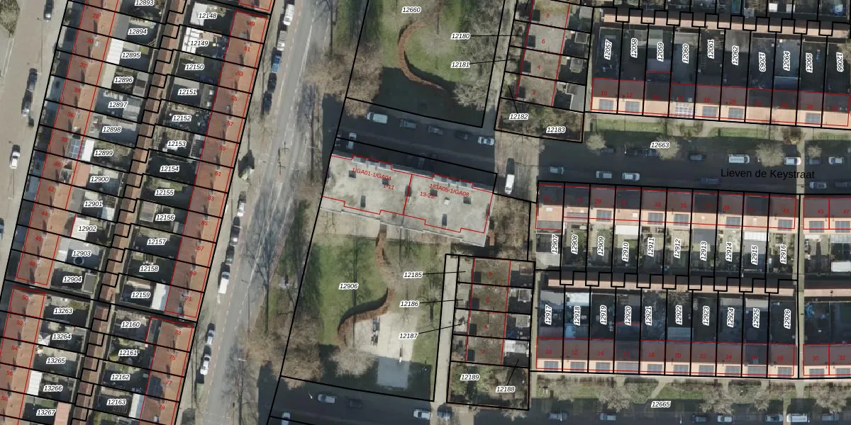 Het perceel waarop Lieven de Keystraat 17 staat heeft een oppervlakte van 2193 m². Dit is een zeer groot perceel. De perceeloppervlakte wordt geregistreerd door het Kadaster. Gedetailleerde informatie over de maten van dit perceel kunt u vinden in het rapport Kadastrale kaart met maatvoering van Lieven de Keystraat 17.